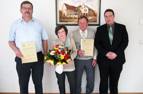 Mit einem Blumenstrauß an Ehefrau Gisela Haas als Dank für die vielen Entbehrungen im Laufe der 25 Dienstjahre begann Bürgermeister Haas die Verabschiedung des scheidenden Wassermeisters Gerhard Haas.