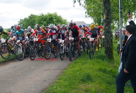 War der Startschuss durch Bürgermeister Markus Haas, der zuvor die Organisatoren vom VfR Waldkatzenbach für ihr Engagement gelobt hatte, noch im Trockenen möglich, öffnete der Himmel eine Weile später seine Pforten. Doch davon ließ sich der spätere Sieger Daniel Aspacher (Team Haico) nicht beirren und fuhr nach 3:10:08 Stunden mit acht Minuten Vorsprung überlegen vor Dominik Harzheim (Quantor-Bikes) über die Ziellinie. Den dritten Platz auf der Langstrecke belegte Benjamin Michael (Ghost Racing Team). Schnellste Frau nach 66 Kilometern war Anja Köhnlein-Spindler, die in 4:28:03 Stunden die Seniorinnen I-Wertung gewann.