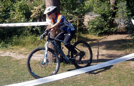 Der drei Kilometer lange Rundkurs um die Pfingstbergschule war geprägt von vielen Slaloms. Hannes Banspach musste sechs Runden absolvieren und konnte seine gute Startposition bis ins Ziel halten. Er erreichte mit sechs Sekunden Rückstand den zweiten Platz und sicherte sich damit den Titel des Bezirksmeisters. Winterhauch-Bikerin Paulina Ihrig, musste ebenfalls sechs Runden absolvieren. Mit ihrem Sieg sicherte sich sich ebenfall den Titel einer Bezirksmeisterin.