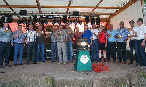 Bürgermeister Markus Haas (li.) und Ortsvorsteher Peter Ihrig (6.v.li.) stoßen mit den Gästen an. (Foto: Hofherr)