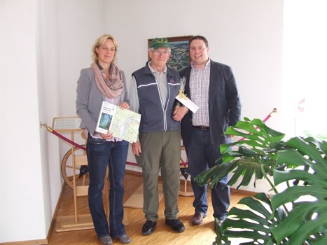 Wanderwegewart Rolf Reichenbacher (Mitte) mit Bürgermeister Markus Haas (re.) und Anke Lenz von der Tourist-Info der Gemeinde Waldbrunn. (Foto: privat)