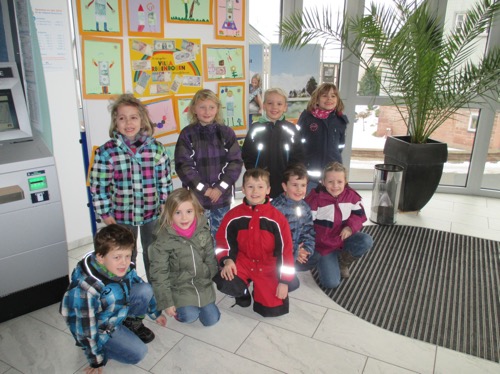 Strümpfelbrunn. (pm) Dieser Tage waren die Schulanfänger des Kindergartens „Villa Regenbogen“ zu Besuch bei der Volksbank Neckartal Geschäftsstelle in Strümpfelbrunn. Aus unterschiedlichen Währungen bastelten die Kinder verschiedene Bilder, die nun den Eingangsbereich zieren.