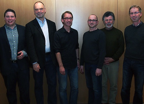 Bürgermeister Markus Haas (li.) gratuliert dem Vorstand um den Vorsitzenden Ernst Stephan (2.v.li.) zur Wiederwahl. (Foto: Hofherr)