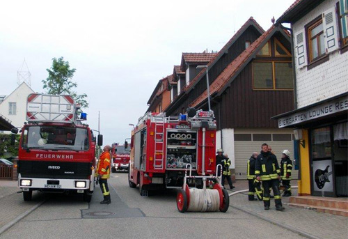 Strümpfelbrunn. (be) Am Abend des Vatertages wurde die Feuerwehr Strümpfelbrunn um kurz vor 18:00 Uhr zu einem gemeldeten Dachstuhlbrand in eine Strümpfelbrunner Gaststätte gerufen.