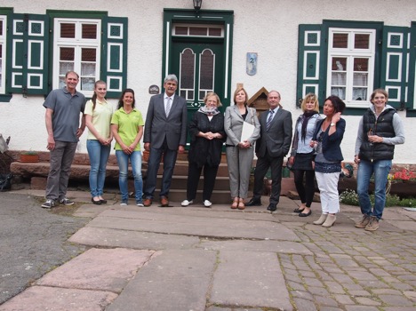 Fast auf den Tag genau vor 20 Jahren, am 14. Mai 1996, begannen die Restaurierungsarbeiten in Eigenarbeit der Familie am gerade erworbenen Gehöft, erzählte Hofbesitzerin und Ferienwohnung-Anbieterin Heike Krämer bei ihrer Begrüßung im Innenhof des Anwesens. Mit viel Herz und Muskelkraft aber behutsam, um das Flair des typisch Odenwälder Fachwerkhauses zu erhalten, ging man zu Werke und gestaltete über die Jahre einen wunderschönen Ort zum Urlauben und Leben. Mit Vergrößerung der Familie, zum Erstgeborenen Timo gesellten sich auf dem Kastanienhof noch Robin und Nesthäkchen Ronja, sowie dem Ausbau von drei Ferienwohnungen im Gesinde- und Wohnhaus, komplettierte sich das Lebenswerk von Heike und Kurt Krämer. Während der Forstbetrieb von Kurt Krämer die eine Einnahmequelle der Familie darstellt bestreite sie selbst mit der Wohnungsvermietung die andere Hälfte, so Heike Krämer.
