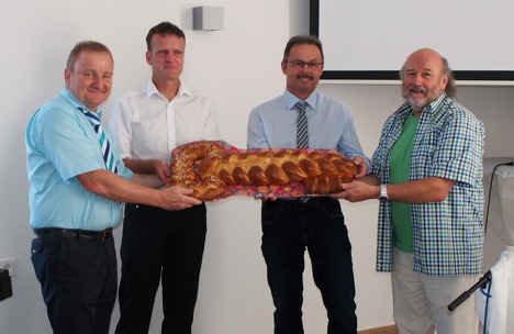 In ihren Grußworten beglückwünschten Bürgermeister Markus Haas und Pfarrer Jonathan Richter die Waldbrunner Gemeinschaft zu den ersten eigenen Räumlichkeiten. Haas ließ die Zuhörer wissen, dass er vor vielen Jahren erstmals mit der Liebeszeller Gemeinschaft in Kontakt gekommen sei. Damals habe in Waldbrunn die Zeltmission Station gemacht. Richter hob hervor, dass mit der Vollendung des Baus die eigentliche Arbeit beginne. Denn nun gelte es, die Räumlichkeiten mit Leben, mit Gemeinschaft zu füllen. Anschließend überbrachte Bezirksleiter Thomas Brecht die Glückwünsche der befreundeten Gemeinschaften aus den Bezirk Kraichgau. Als wahrscheinlich älteste Gemeinschaft in der Region bewiesen die Waldbrunner seit über einem Jahrhundert ihre „große Liebe und Treue zu Jesus Christus“. Eng verbunden sei diese Gemeinschaft mit der Familie Lenz-Fuchs, die nicht nur viele Jahrzehnte ihr Wohnzimmer bereitstellten, sondern nun auch die Maschinenhalle für das Werk Gottes bereitstellten. Während von diesem Bauwerk aus früher die landwirtschaftliche Saat mit der nachfolgenden Ernte ausgegangen sei, säe man dort nun das Wort Gottes. So sei der ursprüngliche Zweck des Bauwerks auch heute noch erhalten, schloss Brecht sein Grußwort. Als Gastgeschenk überreichte er anschließend einen Scheck zur Tilgung des restlichen Schuldbetrags. Nach dem Pastor Michael Piertzik die versammelte Festgesellschaft hat wissen lassen, dass es ein großartiger Tag sei, für den man Gott danken müsse und der Andacht mit Pfarrer Dr. Harald Brixel, ergriff der Vorstand der LGV Rüdiger Daub das Wort. Er berichtete zunächst, dass die Liebenzeller Gemeinschaften in den vergangenen Jahren eine rege Bautätigkeit entfaltet haben. So dürfe man man in Waldbrunn bereits die dritte Einweihung im Jahr 2016 feiern. Dies sei ein Grund zu Freude und Dankbarkeit. Da man bewusst auf Bank- bzw. Fremdkredite verzichte, sondern lediglich interne Darlehen bzw. Spenden für die Errichtung der Immobilien einsetze, sei jede Bautätigkeit eine riesige Herausforderung. Doch könne man stets auf Gott vertrauen, weshalb sich die Finanzierung stets habe stemmen lassen, berichtete Daub. So auch im Laitenhof in Strümpfelbrunn. Dort habe man 236.000 Euro investiert. Diese seien in Form von Spenden in Höhe von 205.000 Euro und als Zuschuss vom Gesamtverband in Höhe von 5.000 Euro gedeckt worden. Die restlichen 26.000 Euro seien als zinsloses Darlehen vom Gesamtverband aufgebracht worden. Im Vertrauen auf Gott habe man auch beim Bau des Waldbrunner Gemeindezentrums viele Wunder erlebt, wie allein die beeindruckende Spendensumme zeige. Auch der unermüdliche Einsatz der vielen Helfer, deren Einsatz sich ebenfalls auf einen rechnerischen Betrag in sechsstelliger Höhe summiere sei ein Wunder. Außerdem beweise man dadurch, dass man eine sehr lebendige Gemeinschaft sei, schloss Rüdiger Daub seine Ausführungen.