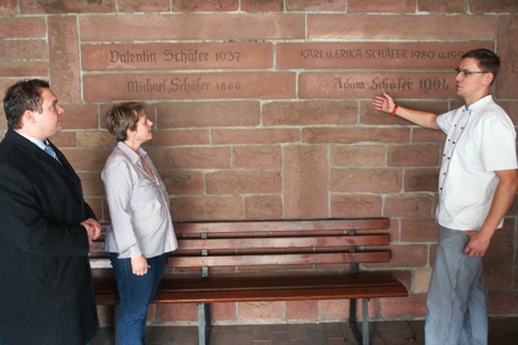 Daniel Schäfer erläutert die Baudaten seiner Vorfahren an Gasthaus Engel. (Foto: Hofherr)