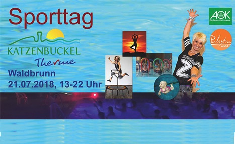 Fitness, Bewegung und Gesundheit stehen bei allen Altersklassen hoch im Kurs. Für die Waldbrunner Katzenbuckel-Therme ist dies ein Grund das Thema aufzugreifen und einen Sporttag zu gestalten. Am 21. Juli 2018, zwischen 13 und 22 Uhr haben sich die Organisatoren daher Unterstützung in Form der Kooperationspartner AOK-die Gesundheitskasse, Palestra Fitness & Freizeit GmbH sowie den Waldbrunner Schwimmverein SV Neptun ins Boot geholt.